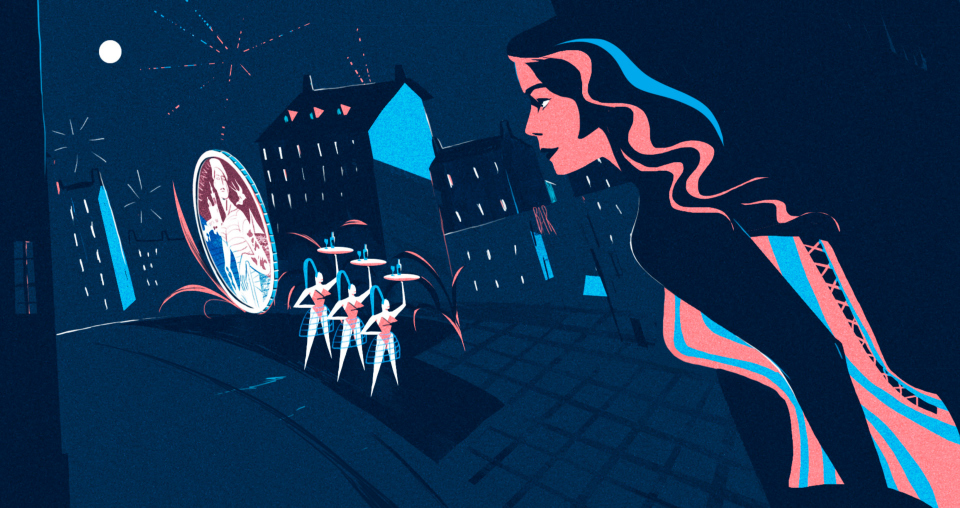 The graphic universe has been created by the illustrator Leïla Courtillon, with the input of Jean-Paul Gaultier for the details in clothing and particularly the woman’s corset.