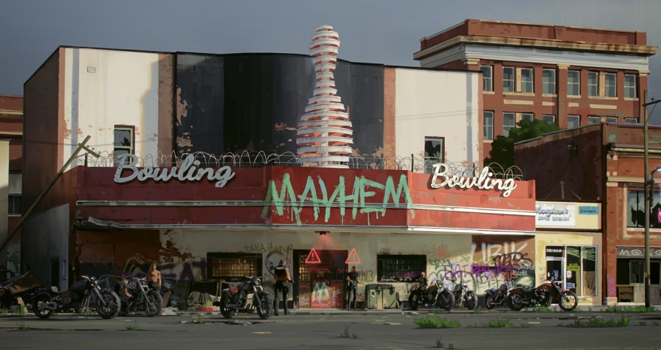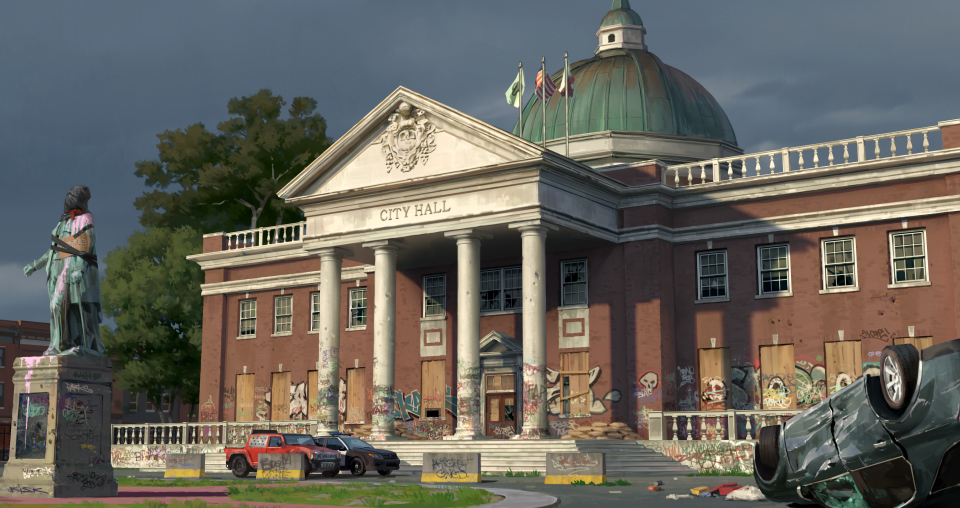 Boddicker worked with PUBG’s team of screenwriters, diving into the development of the lore’s visual transcription in order to create this collapsing, corrupted town.