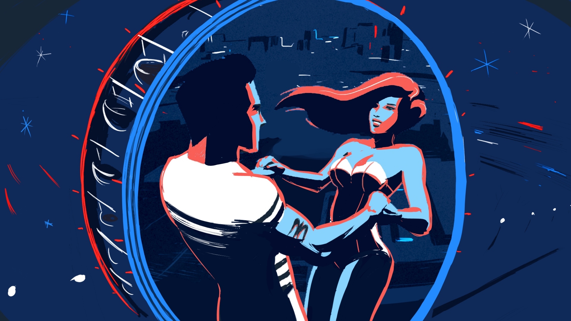 The graphic universe has been created by the illustrator Leïla Courtillon, with the input of Jean-Paul Gaultier for the details in clothing and particularly the woman’s corset.