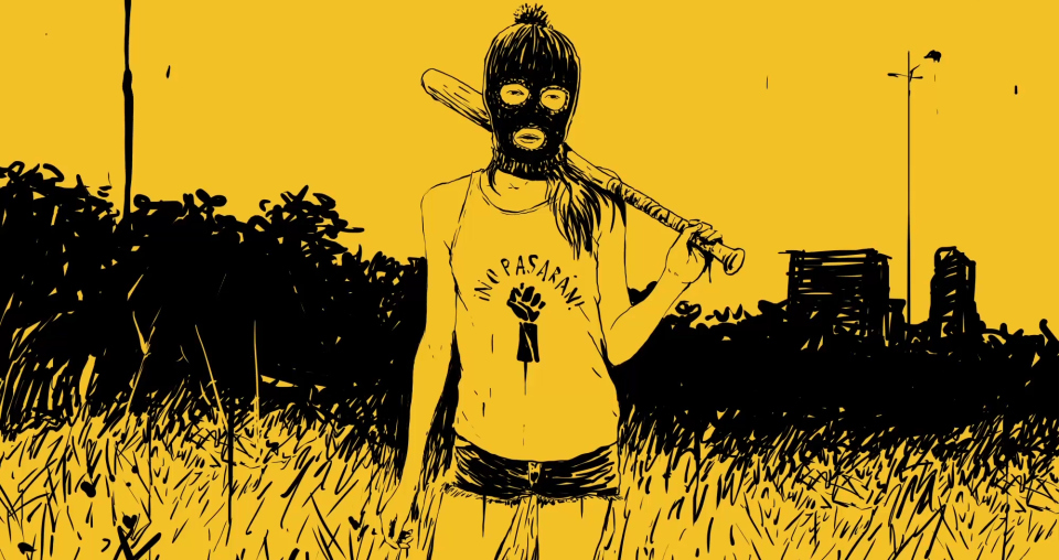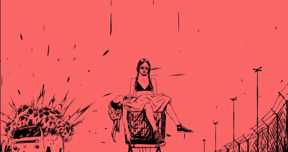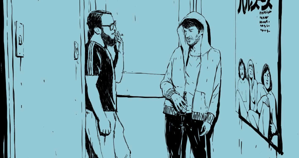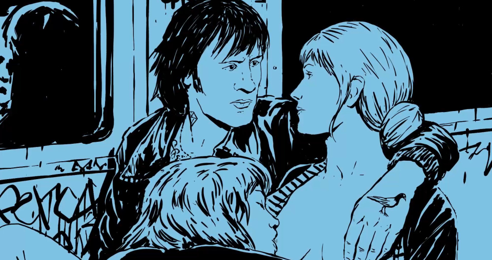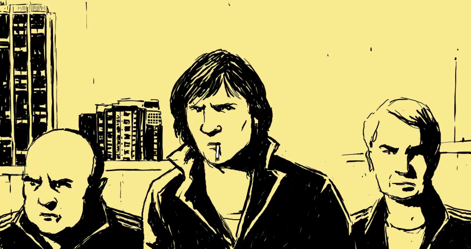 The treatment of the image is voluntarily rough to match with Carvalho’s illustrations. Each sequence was developed to create a loop, reminding the work of Maxime in the music video for the song L’Homme à la Tête de Chou by Gainsbourg, performed by Bashung. The ambitious camera movements and acting subtleties where made possible by animator Olivier Lescot.