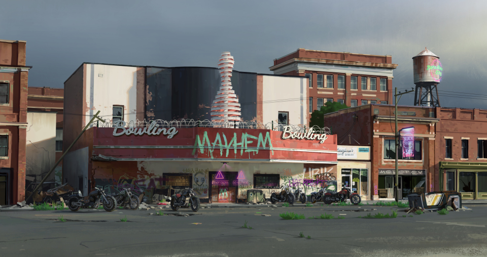 Boddicker worked with PUBG’s team of screenwriters, diving into the development of the lore’s visual transcription in order to create this collapsing, corrupted town.